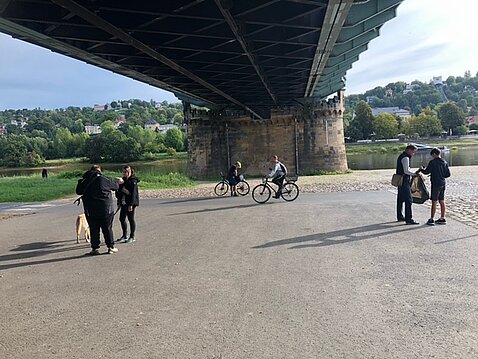 Ob jung oder alt, zogen die fleißigen Sammler, mit Handschuhen, Greifer und Mülltüten eifrig in Richtung Waldschlößchenbrücke/ Hertelstraße und in Richtung Niedersedlitz/ Flutgraben.