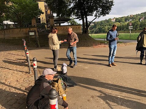 So einfach kann man Menschen zusammenbringen und füreinander interessieren. Einfach machen und schon entsteht etwas ganz Neues. Trotzdem ist Vorbereitung alles! Hier gilt besonderer Dank der Landeshauptstadt Dresden, die mit 2 Mitarbeiterinnen, Technik und Material diesen Einsatz ermöglichten und selber tüchtig mit anpackten.