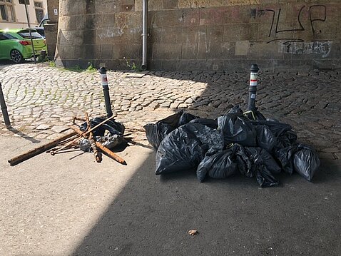 Egal ob Papier, Zigarettenstummel, Glasscherben, Plastik oder sogar riesige Eisenstäbe, wurden die Mülltüten gefüllt und an der Sammelstelle abgelegt.