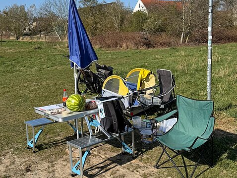 Eine stärkende Mittagspause sicherte uns der lokale Pizza-Service. Erfrischungen und weitere Verpflegung fanden ihren Weg mittels Fahrradanhänger Randy zum Danke ihren Weg direkt bis ans Wasser. Auch haben wir gelernt wie Futter mit einfachen Haushaltsmitteln angemischt wird und zu guter Letzt wurde selbstverständlich fleißig das Auswerfen geübt.